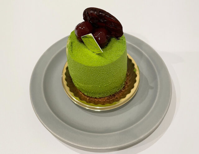 そしてこちらはシェフのスペシャリテ、人気の「ピスタッシュグリオット」。一見抹茶のようにも見えますが、外側はふんわり軽やかなしっかりピスタチオ味のムース。