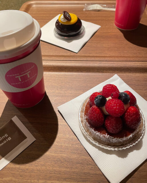 手前のベリーのタルトは、タルト生地の周りにココナッツが塗されていて私好み。ベリーもたっぷりでやはりおいしい。